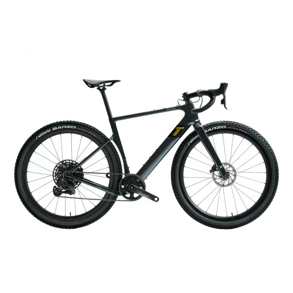 Das 3T Exploro Ultra Force/Eagle AXS hat in Sachen Schaltkomponenten einen „Mullet“ Aufbau, wie er aktuell immer beliebter wird. Die Brems-Schalthebel kommen aus der superedlen Sram Force AXS Rennradgruppe, das Schaltwerk aus der ebenso überragenden Eagle XX1 Serie für Mountainbikes. Die Schaltkomponenten funktionieren elektronisch und drahtlos. Der Vorteil der Mullet-Schaltung? So kann man einen Dropbar-Lenker mit einer MTB-typisch großen Übersetzungsbandbreite fahren. Das 3T Exploro Eagle hat eine große 11-50er Kassette mit Reserven für steile Trail-Anstiege und man kann auf der Straße immer noch richtig Druck machen. Auf den Fulcrum Rapid Red 900 Gravel-Laufrädern sind Vittoria Barzo Reifen im Format 27,5×2,1“ aufgezogen. Carbonlenker, Sattelstütze und Vorbau kommen von 3T selbst.