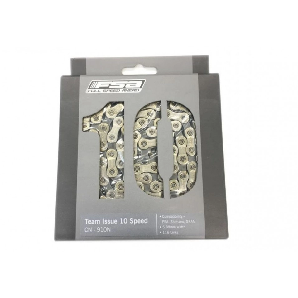 Los componentes, accesorios y recambios originales de FSA los encuentras en Escapa. La Cadena FSA Team Issue 10V 116 esl. se caracteriza por su funcionamiento suave y silencioso. Diseñada a su vez con gran capacidad de resistencia y el menor ruido posible.