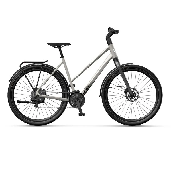 Besonders leichter, durchdacht konstruierter und aufwändig verarbeiteter Aluminiumrahmen. Glatte Smooth Welding Schweißnähte verleihen dem Rahmen eine besonders hochwertige Anmutung. Die Züge verlaufen besonders elegant und aufgeräumt im Inneren des Rahmens. Ein integrierter Lenkeinschlagsbegrenzer schützt den Rahmen vor Beschädigungen. Ein Schutzelement an der Unterseite des Rahmens bewahrt das Koga vor Steinschlagschäden. Die Frontleuchte ist in den Rahmen integriert. Das Vorderrad wird in einer verwindungssteifen und ebenfalls sehr leichten Carbongabel geführt.